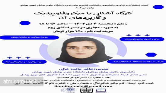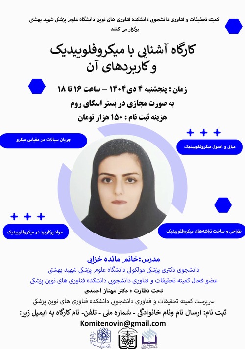 کارگاه آشنایی با میکروفلوییدیک و کاربردهای آن مدرس: خانم مائده خزایی ،پنج شنبه 4 دی 1404 گروه خبری : اخبار معاونت پژوهشی کد خبر : 166312 لینک کوتاه کلید واژه